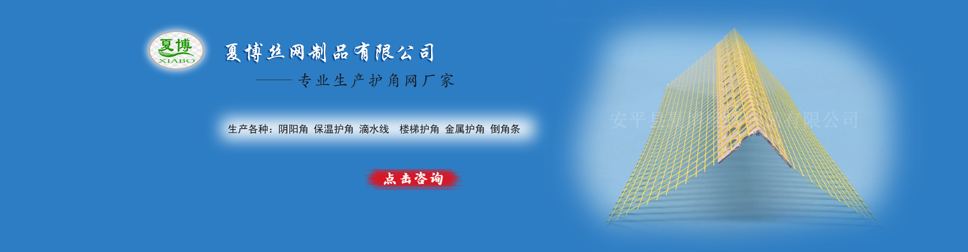 河北安平夏博絲網(wǎng)制品有限公司專業(yè)生產(chǎn)各種護(hù)角條:金屬?zèng)_孔護(hù)角、T型金屬護(hù)角條、U型金屬卡條、Z型...