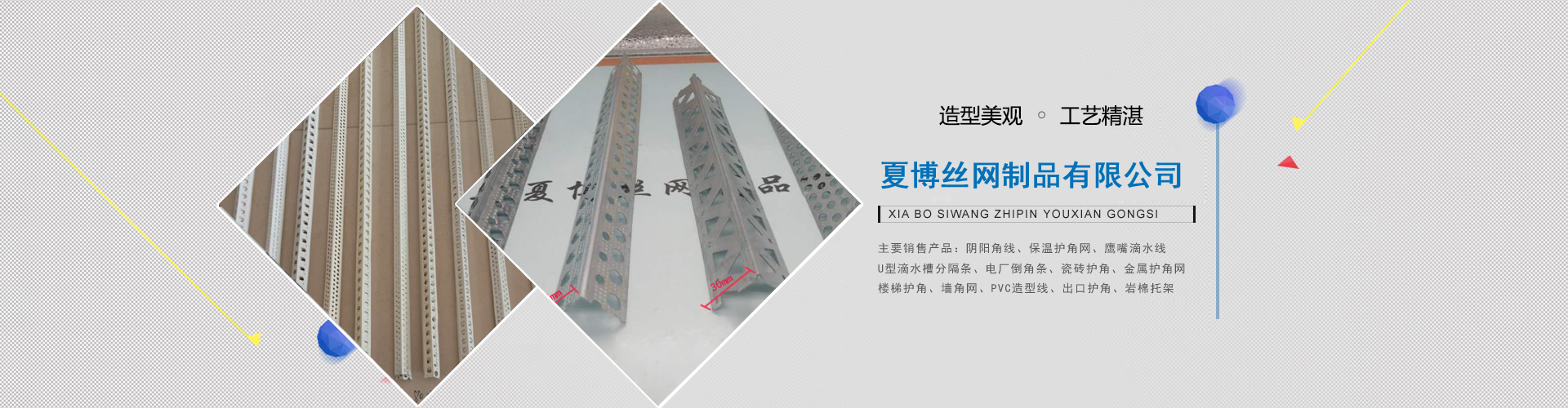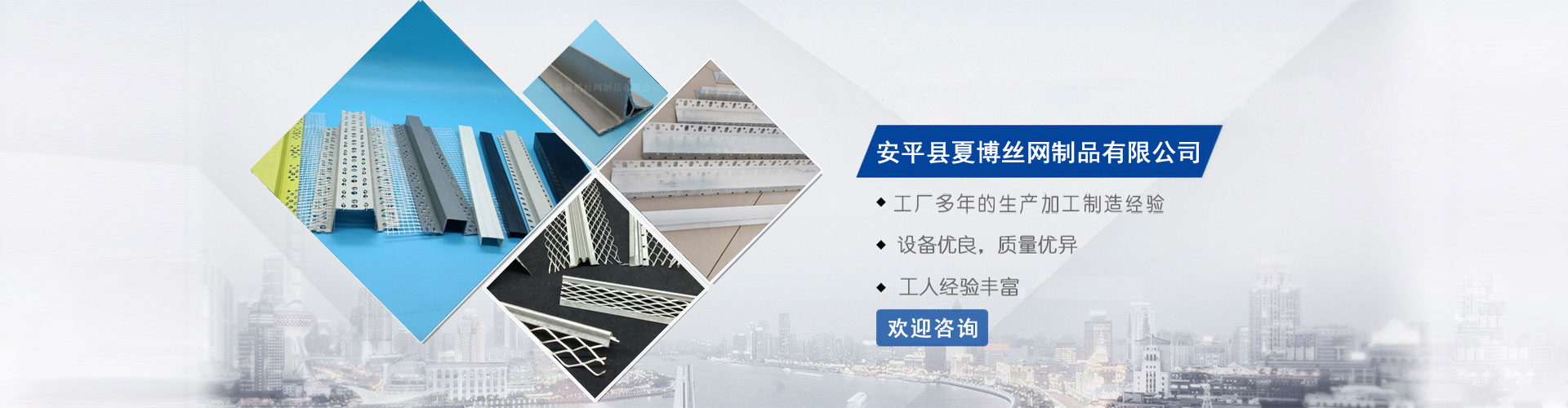 安平夏博絲網(wǎng)制品有限公司多年專業(yè)生產(chǎn)齊全的陰陽角線,保溫護(hù)角網(wǎng),帶網(wǎng)U型分隔條,鍍鋅板沖孔護(hù)角條等產(chǎn)品。以科技為基礎(chǔ),質(zhì)量為根本!